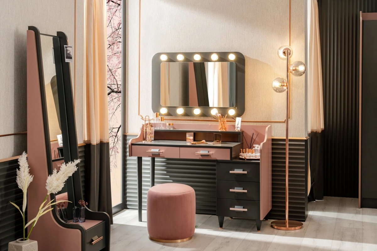 Toaletný stolík Khalisa je perfektným miestom na osobnú starostlivosť a zároveň ponúka možnosť využitia aj ako písací stôl. Je navrhnutý tak, aby spríjemnil a zorganizoval vašu každodennú rutinu.