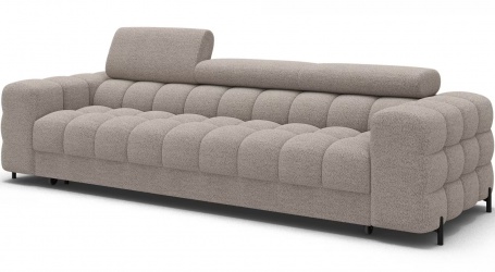 Prešívaný sedák s výškou 47 cm, šírkou 200 cm a hĺbkou 60 cm poskytuje komfort pre každodenné sedenie aj ľahké vstávanie. Nastaviteľné opierky hlavy vám umožnia prispôsobiť oporu krku a ramien podľa aktuálnej polohy. Sedák je konštruovaný na vlnových pružinách a čalounických pásoch, vyplnený kombináciou polyuretánovej peny T3030 a pružnej HR 3030; operadlo dopĺňa pena T2130. Výsledkom je stabilné, ale príjemne mäkké podoprenie chrbta. Kapacita sedenia sú 3 miesta, celková nosnosť 220 kg.