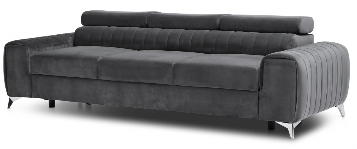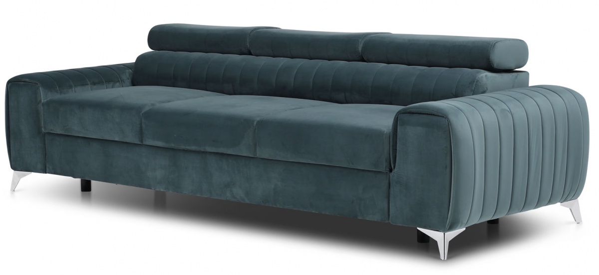 Sedák je vyplnený kombináciou HR peny a peny T30, ktorú podopierajú robustné pružiny v tvare B. Výsledkom je vyvážená tuhosť, pružnosť a pohodlie pri sedení aj každodennom používaní. Operadlo z peny T2540 príjemne podoprie chrbát, nastaviteľné opierky hlavy zase pridajú komfort pri čítaní, sledovaní filmu aj odpočinku. Kapacita sedadiel je tri osoby, odporúčaná nosnosť je 220 kg.