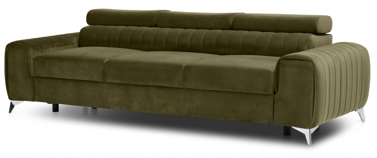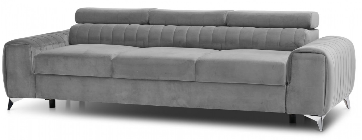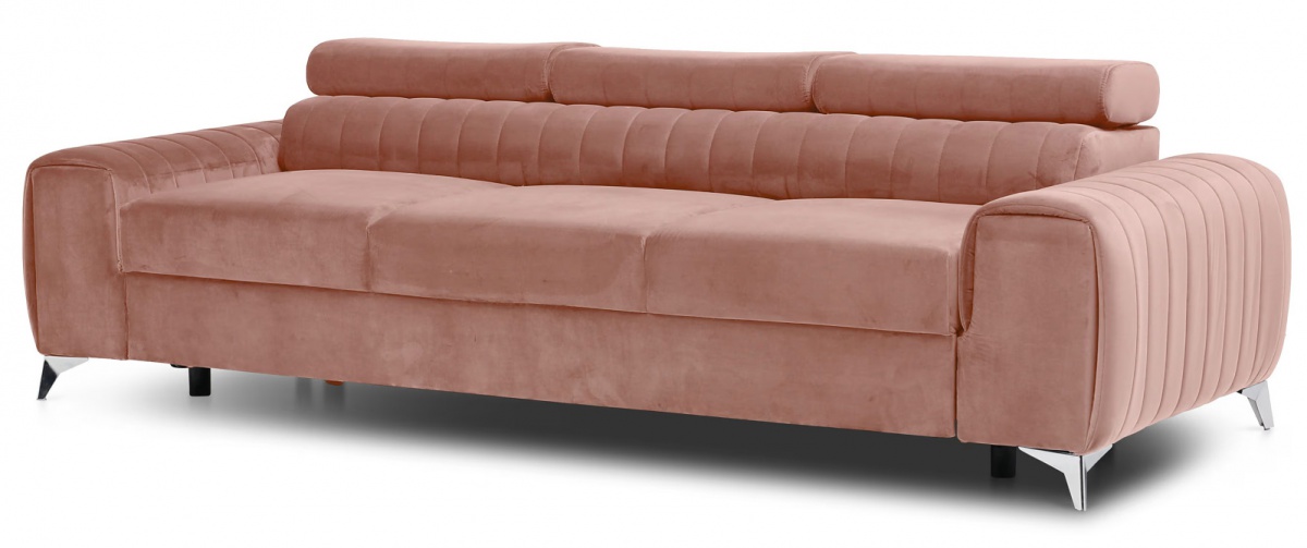 Trojmiestna rozkladacia pohovka Laurence kombinuje ľahkosť dizajnu a každodennú praktickosť. Masívny borovicový rám, šikmé chrómované nohy a čalúnenie dopĺňa sedák z HR a T30 pien s pružinami B. Vďaka systému Puma Plus ju ľahko premeníte na pohodlné dvojlôžko 199 × 136 cm. Ideálne do menších miestností, v mnohých farbách.