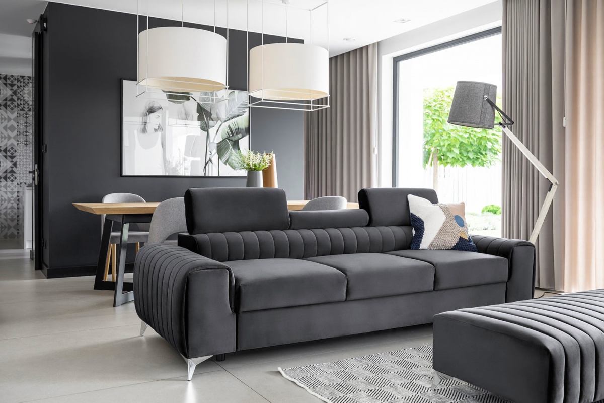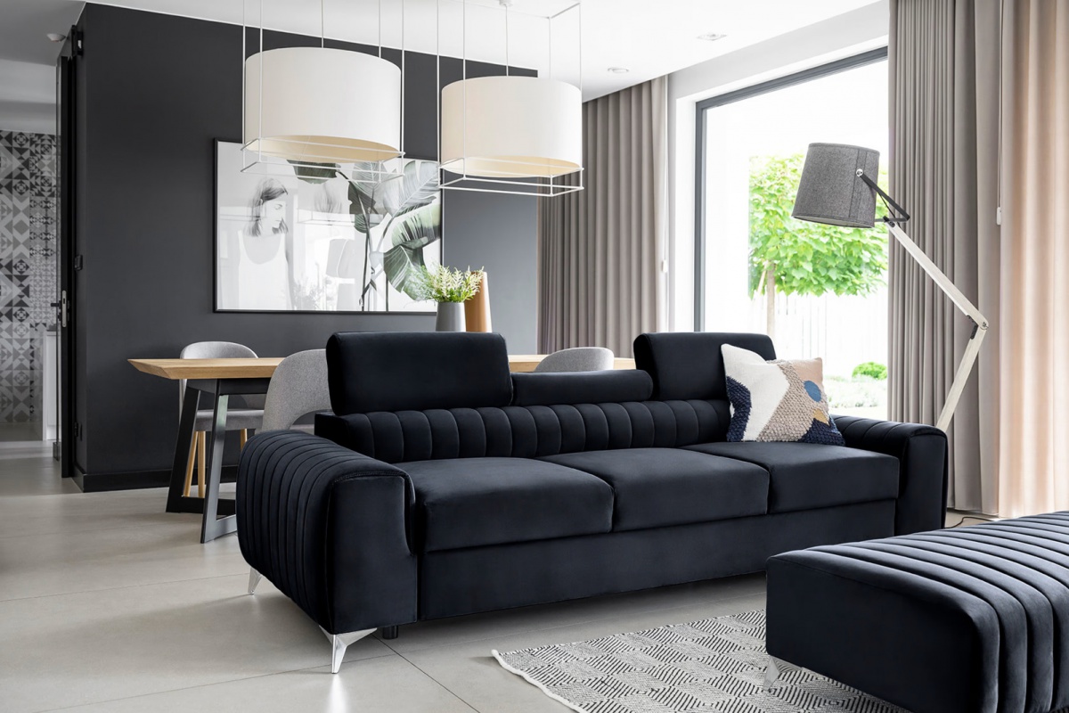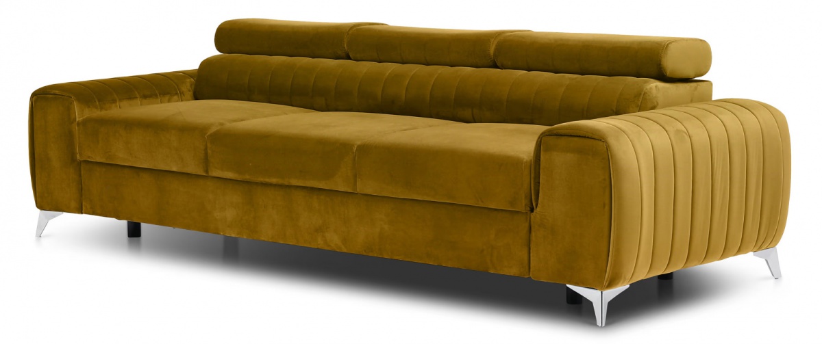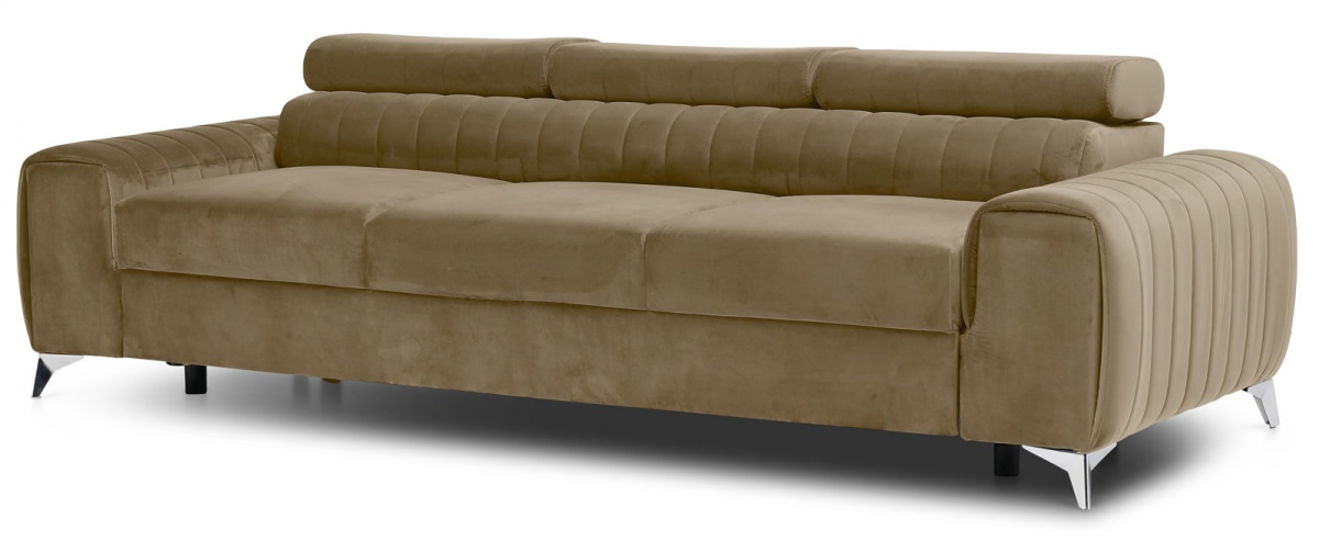 Doprajte si pohodlie a štýl s trojmiestnou rozkladacou pohovkou Laurence, ktorá vyniká ľahkým, moderným vzhľadom a poctivou konštrukciou. Masívny drevený rám z borovice spočíva na šikmých, chrómovaných kovových nohách vysokých 9 cm, takže pod ňou bez problémov prejde aj robotický vysávač. Čalúnenie z odolných polyesterových látok pôsobí elegantne a ľahko sa udržuje, zatiaľ čo výrazné prešívanie a jasne definované tri sedacie zóny dodávajú celku charakter.
