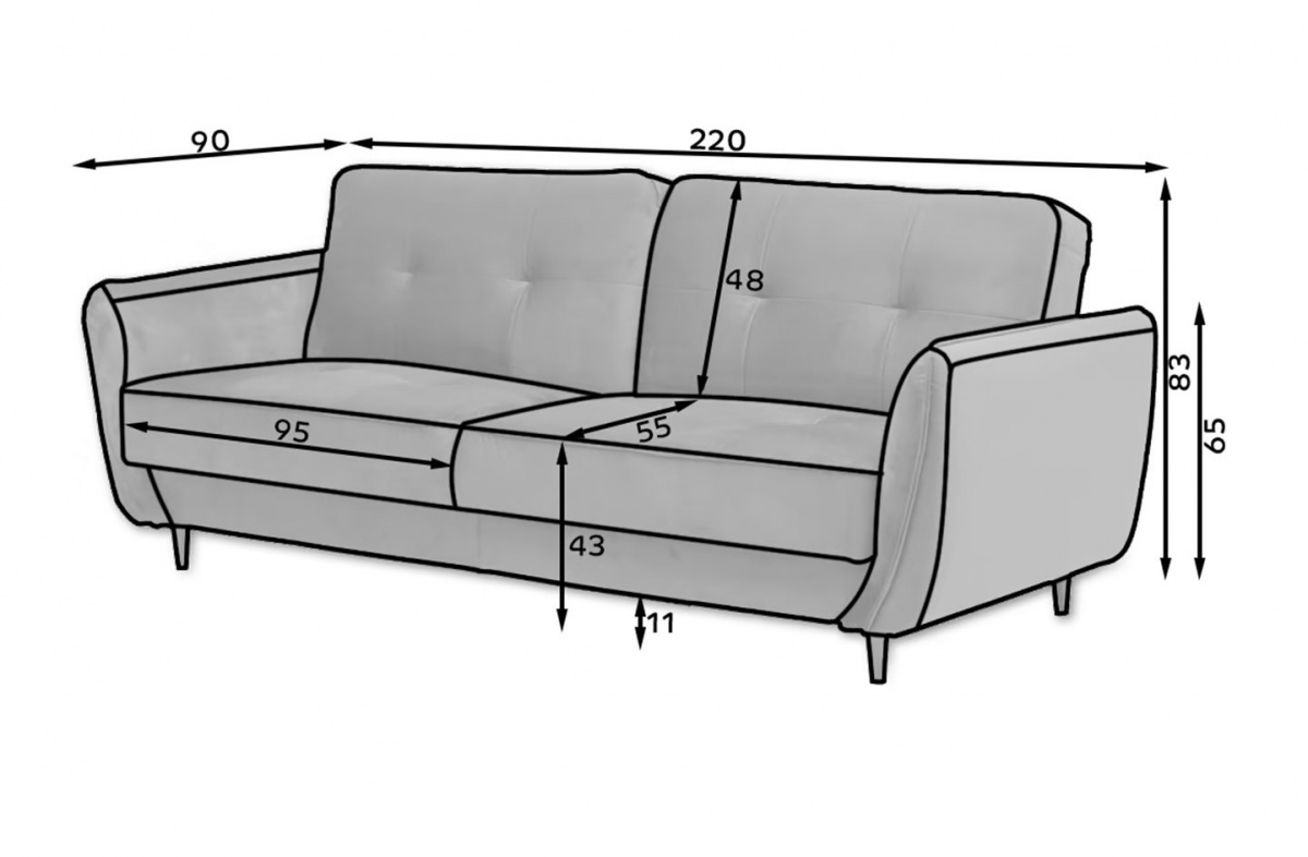trojmiestnou rozkladacou pohovkou Beatrice, ktorá elegantne spája nadčasový vzhľad a súčasný dizajn. Vďaka premysleným proporciám so šírkou 220 cm, výškou 83 cm a hĺbkou 90 cm sa skvele hodí do stredne veľkých aj menších