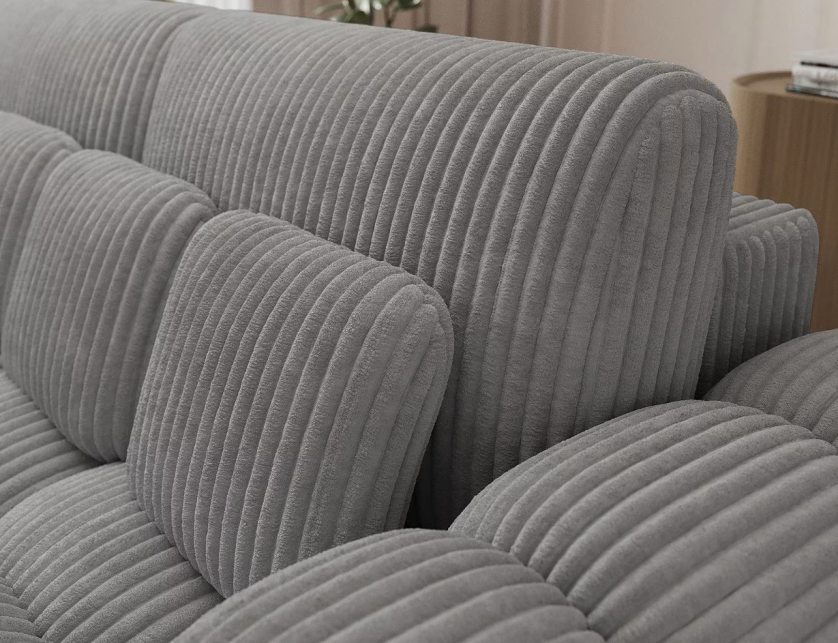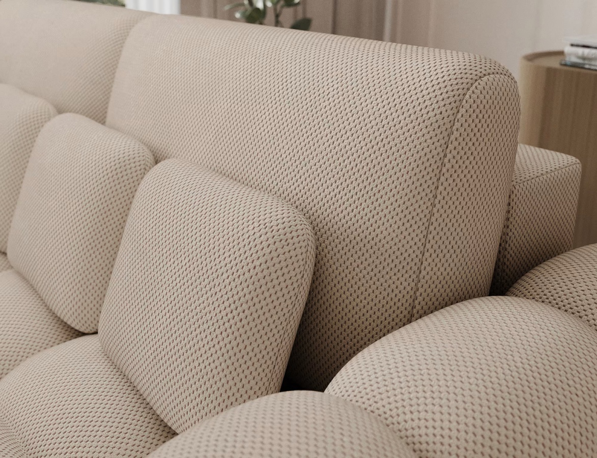 Súčasťou balenia sú vankúše pre okamžitý komfort: dva oporné a šesť dekoračných s výplňou z penového granulátu, všetky sú plne odnímateľné pre rýchlu údržbu. Vďaka ôsmim dostupným farbám ľahko zladíte pohovku so štýlom interiéru – od vzdušne svetlých tónov po výrazné akcenty.