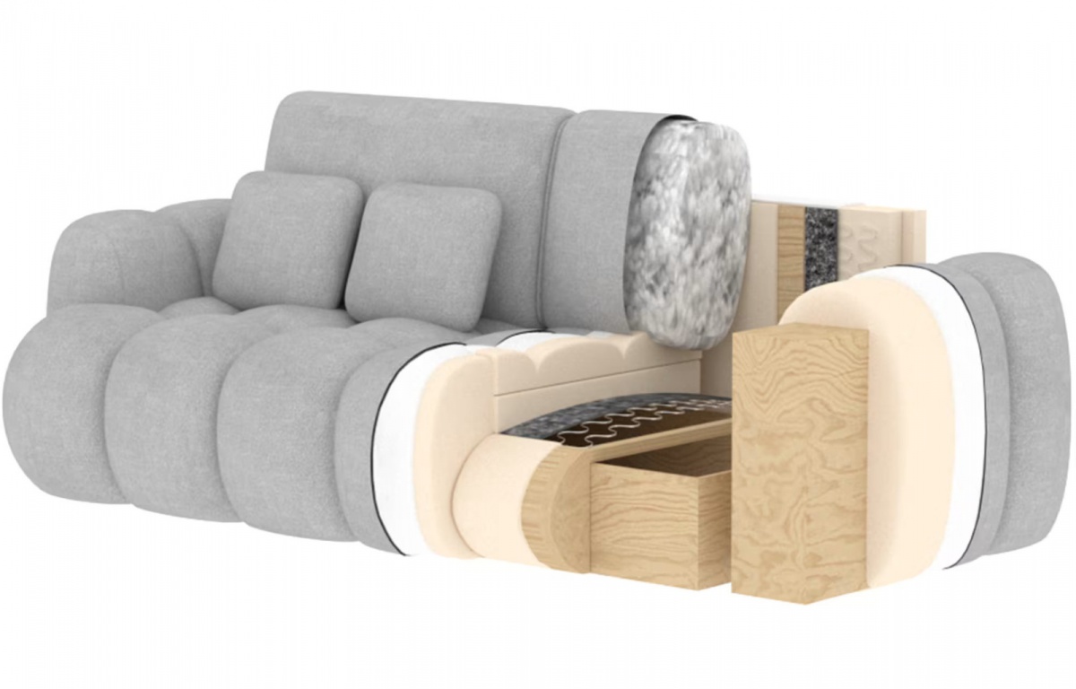 Kedykoľvek potrebujete lôžko pre hostí, ľahko ju rozložíte pomocou mechanizmu Delfín na pohodlnú spaciu plochu 142 × 190 cm. Jadro sedadla kombinuje vlnitú pružinu typu B a peny HR3030 a T2315, takže poskytuje pružnú oporu a stabilný komfort pri sedení aj spaní. Operadlo vypĺňa vlnová pružina typ B a peny T2540 a T2315, ktoré pomáhajú udržať ergonomickú oporu chrbta. Konštrukcia z masívneho borovicového dreva zvyšuje odolnosť, celková nosnosť je 250 kg.