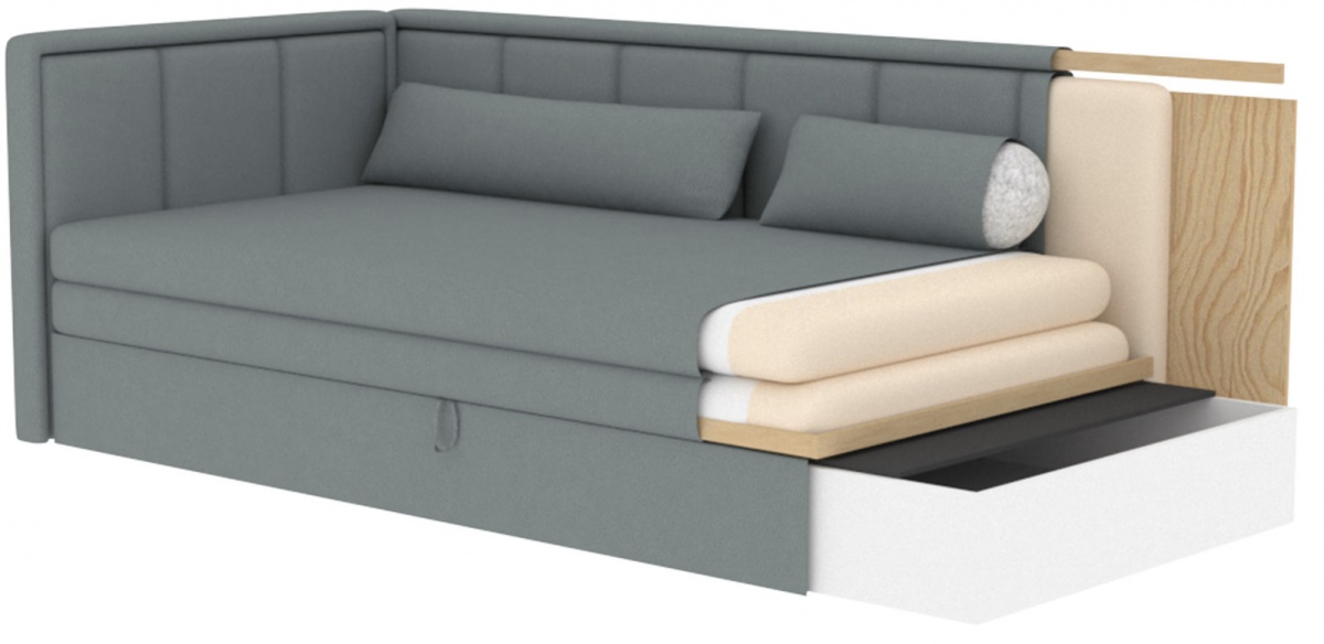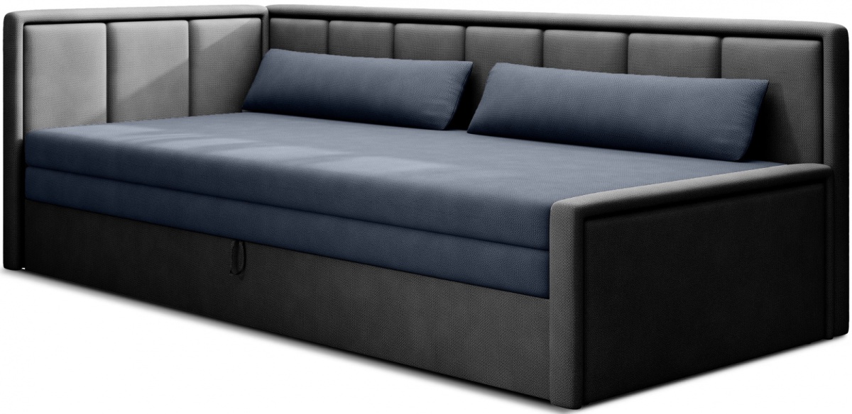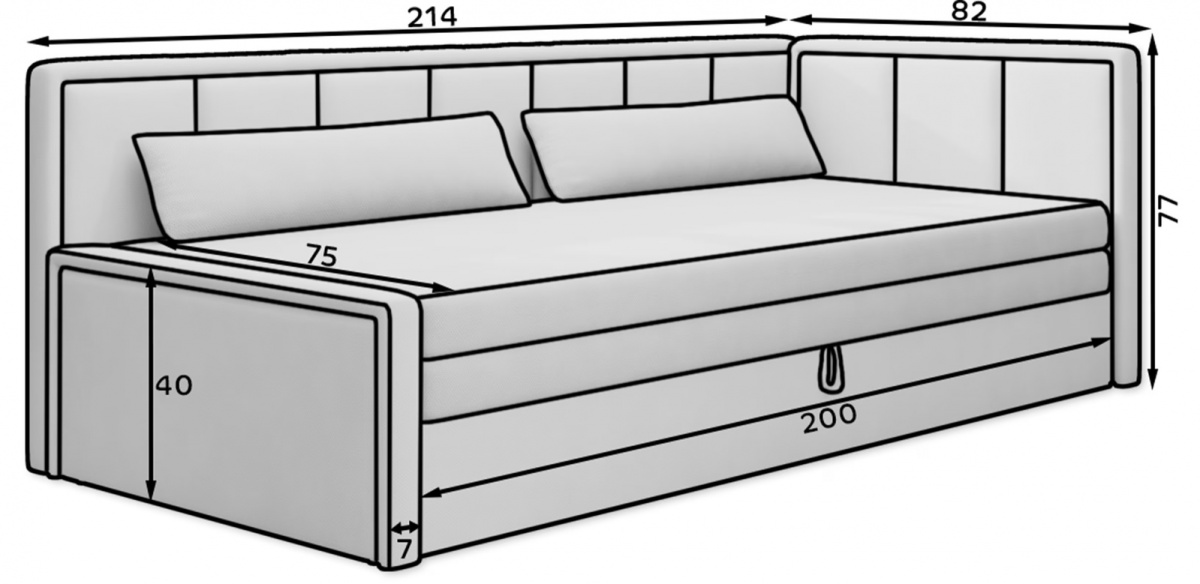 Nechýba priestorný úložný box na posteľnú bielizeň v spodnej časti, ktorý urýchli stlanie a udrží poriadok. Dva dekoratívne vankúše s polyesterovým poťahom a výplňou z penového granulátu sú súčasťou balenia; vankúše je možné ľahko odňať.