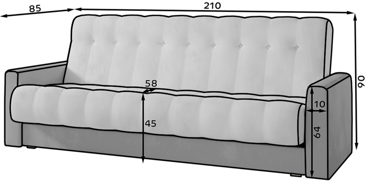 Garett poskytne komfortné sedenie pre tri osoby, pričom sedák má šírku 192 cm, výšku 46 cm a hĺbku 58 cm. Celkové rozmery pohovky sú 212 × 90 × 85 cm (š × v × h), takže sa ľahko zmestí aj do stredne veľkých obývacích izieb. Nosnosť je 200 kg.