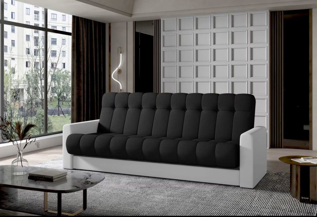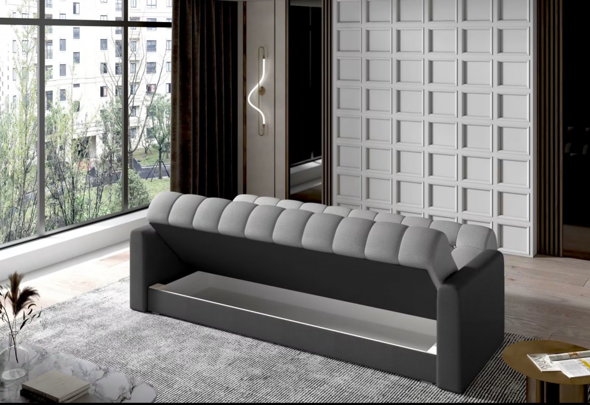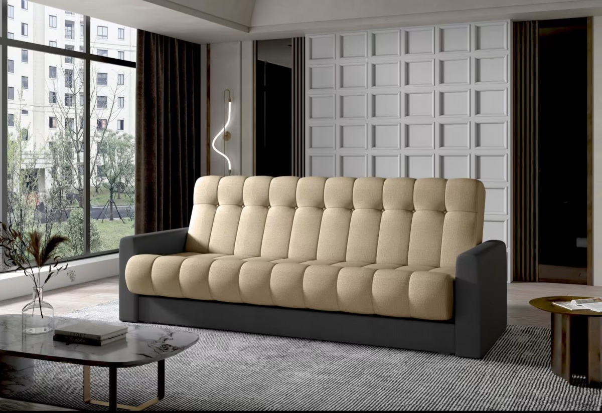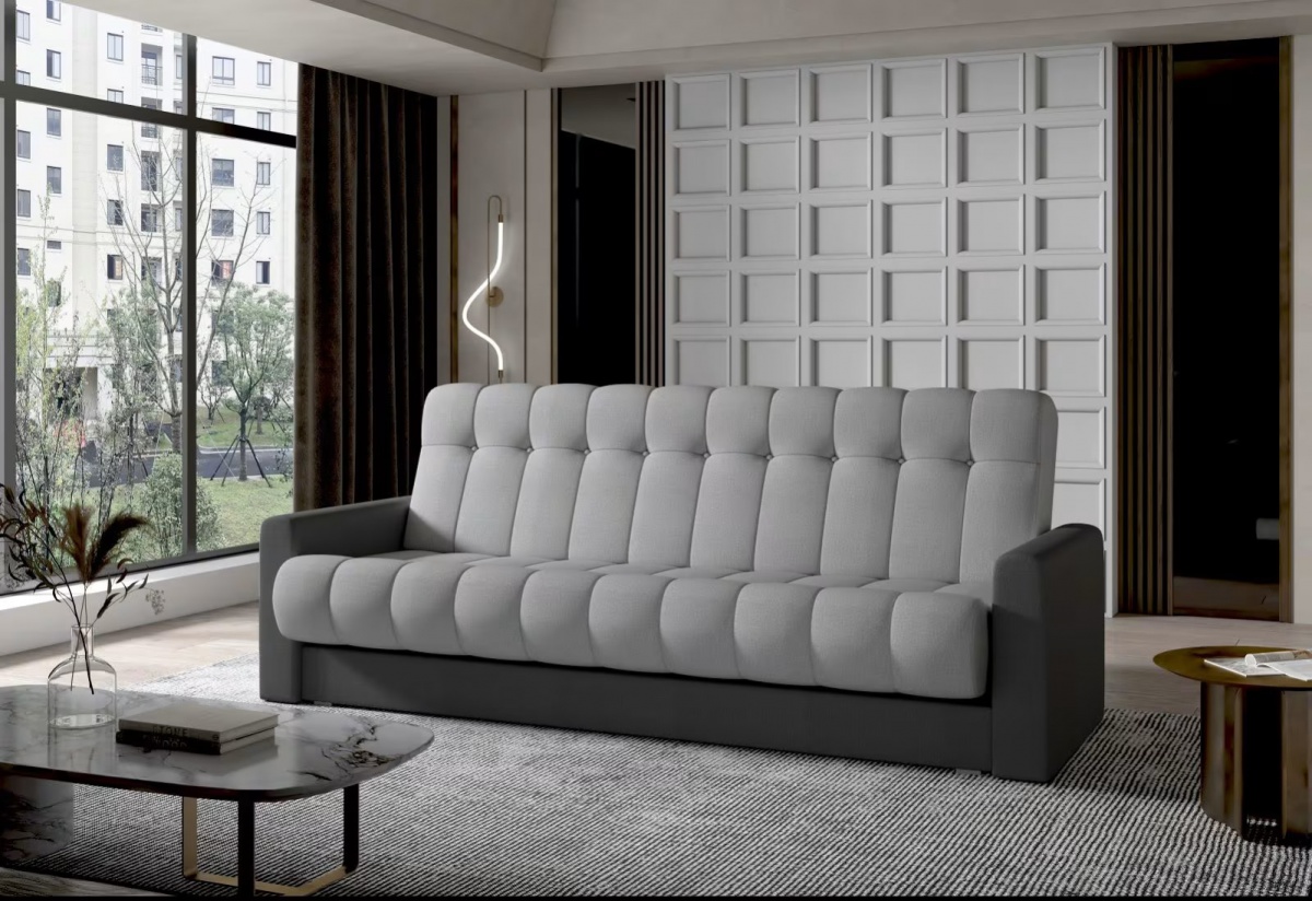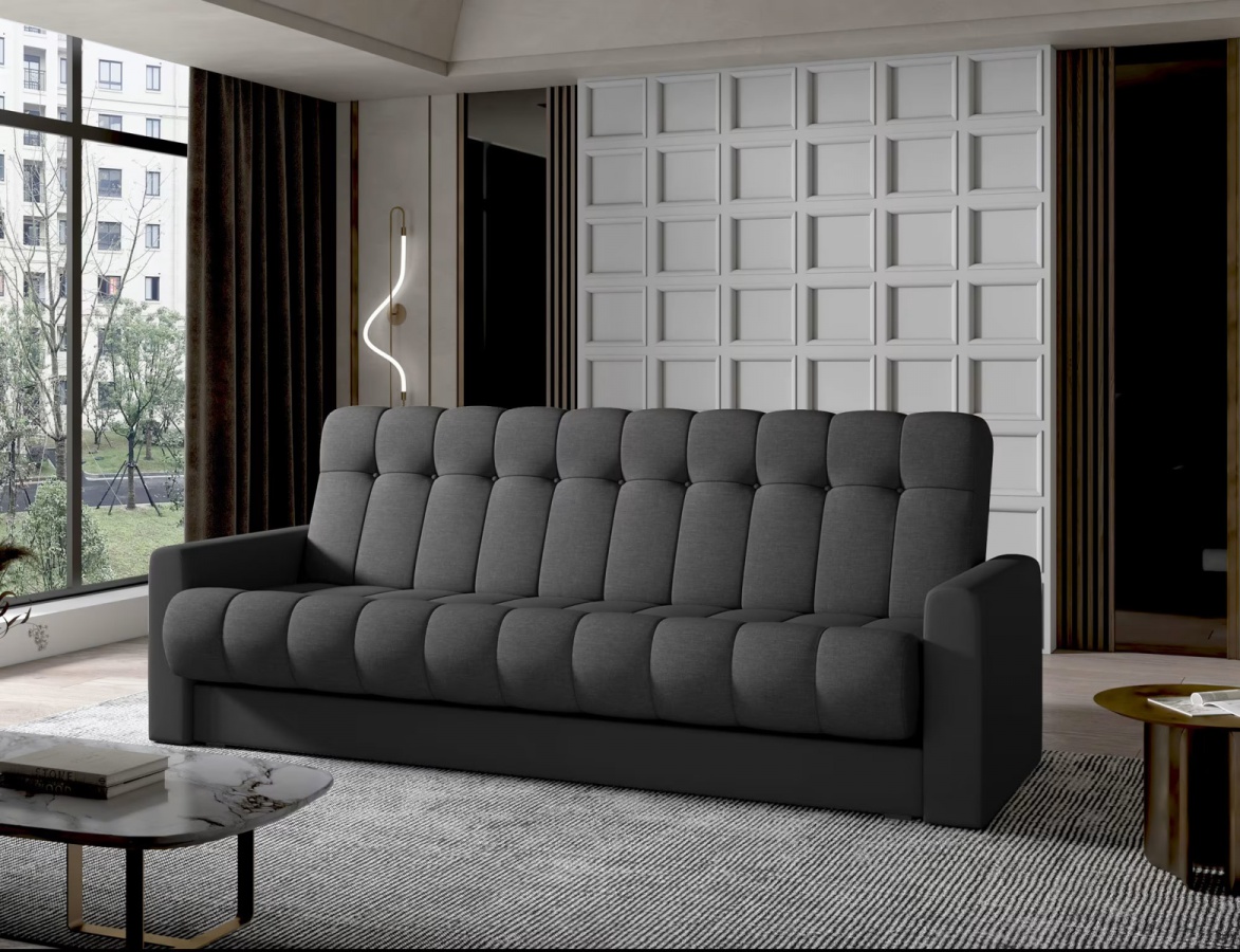 trojmiestna rozkladacia pohovka s úložným priestorom, ktorá zaujme kvalitným remeselným spracovaním a tradičným vzhľadom. Vďaka rozkladacej funkcii a mechanizmu klik-klak sa behom okamihu premení na pohodlné