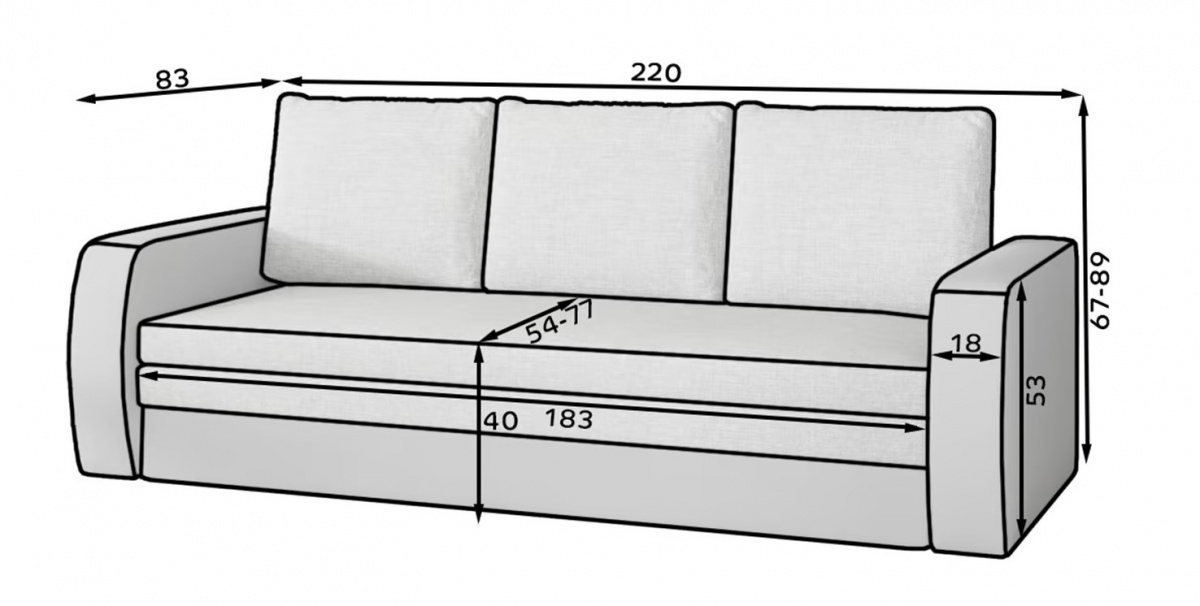 trojmiestna rozkladacia pohovka pre milovníkov čistých línií, ktorá spája útulnosť, pohodlie aj funkčnosť. Meria 220 × 83 × 89 cm a vďaka výsuvnému spodku na kolieskach ju behom chvíľky premeníte na