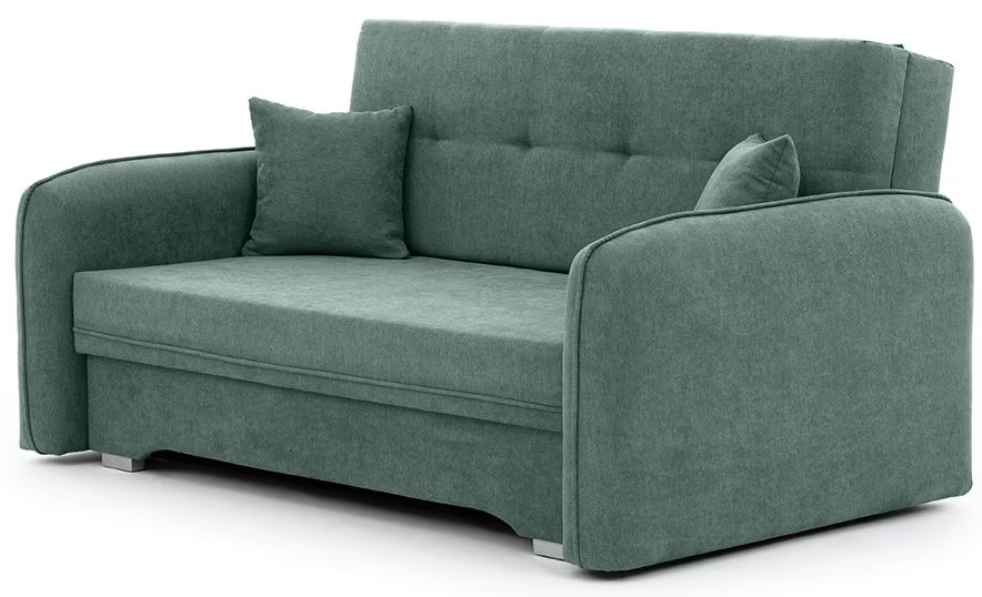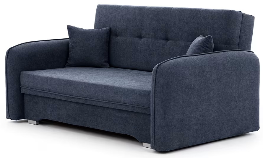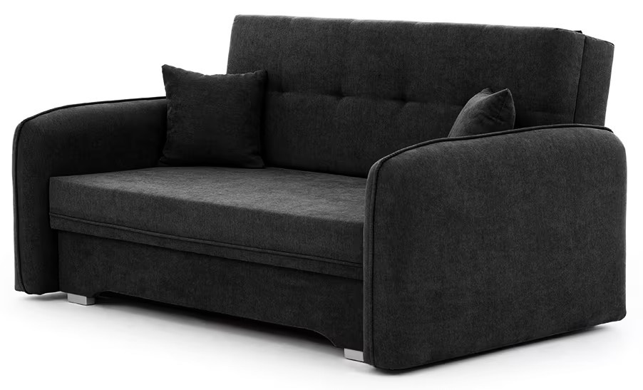 Trojmiestna rozkladacia pohovka Laine spája minimalistický dizajn, pohodlie peny T25 a praktický úložný priestor. Rýchlo sa zmení na lôžko 196×125 cm, má prešívané operadlo, 2 vankúše a nízke čierne nôžky. Na výber z mnohých farieb.