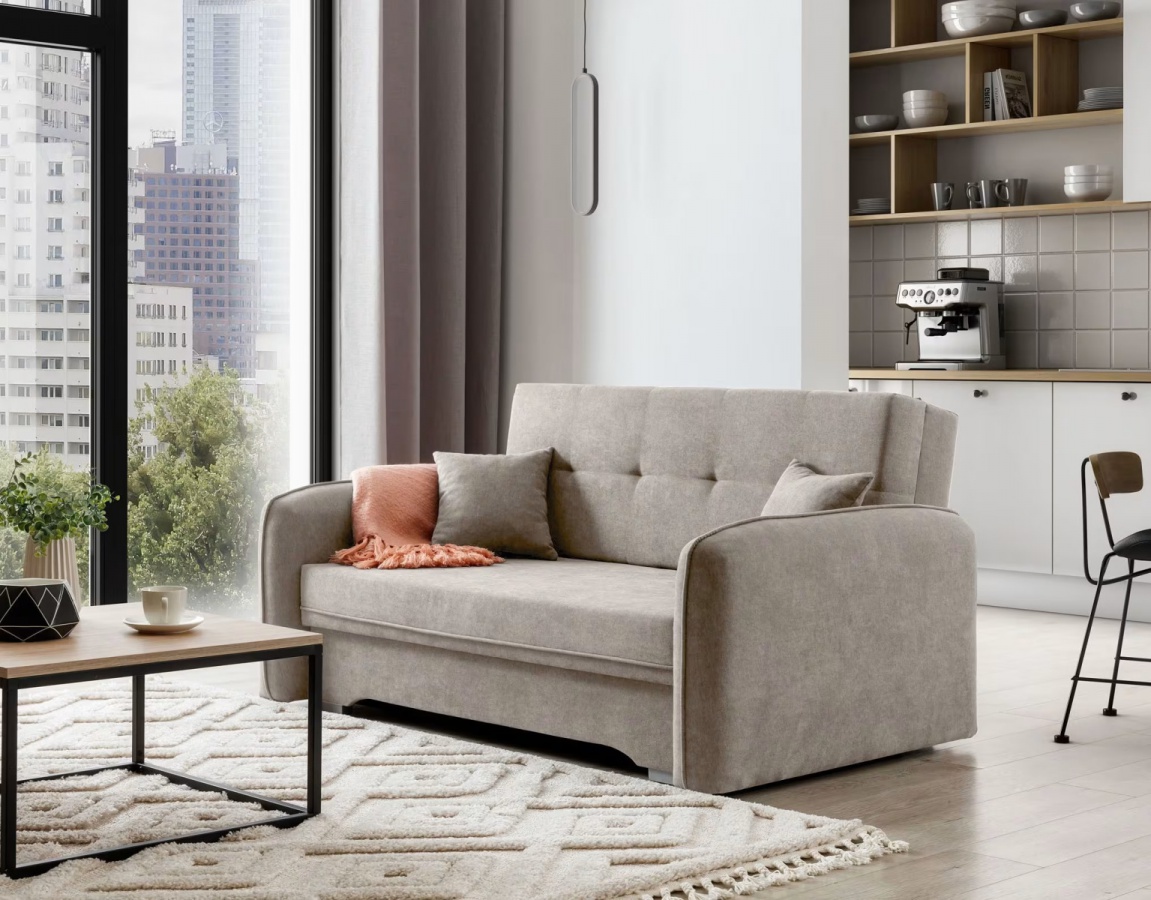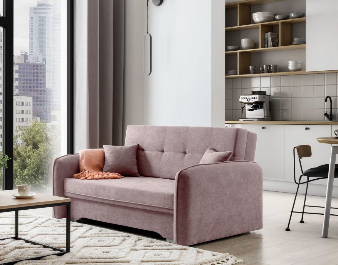 Pohovka Laine behom chvíľky premeníte na pohodlné lôžko s rozmermi 196×125 cm vďaka praktickému DL mechanizmu – ideálny pre hostí aj víkendové filmové maratóny. Integrovaný úložný priestor pojme posteľnú bielizeň, prikrývky aj prikrývky, takže máte všetko po ruke a obývačka zostáva uprataná.