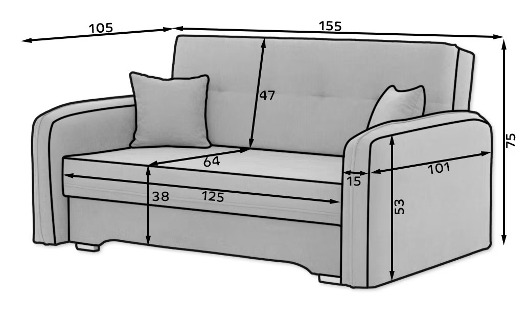Vynikajúci dizajn, premyslené detaily a minimalistická silueta robia z trojmiestnej rozkladacej pohovky Laine stávku na istotu do moderných interiérov. Kompaktné rozmery 155×105×75 cm šetria miesto, napriek tomu ponúkajú pohodlné sedenie pre tri osoby.