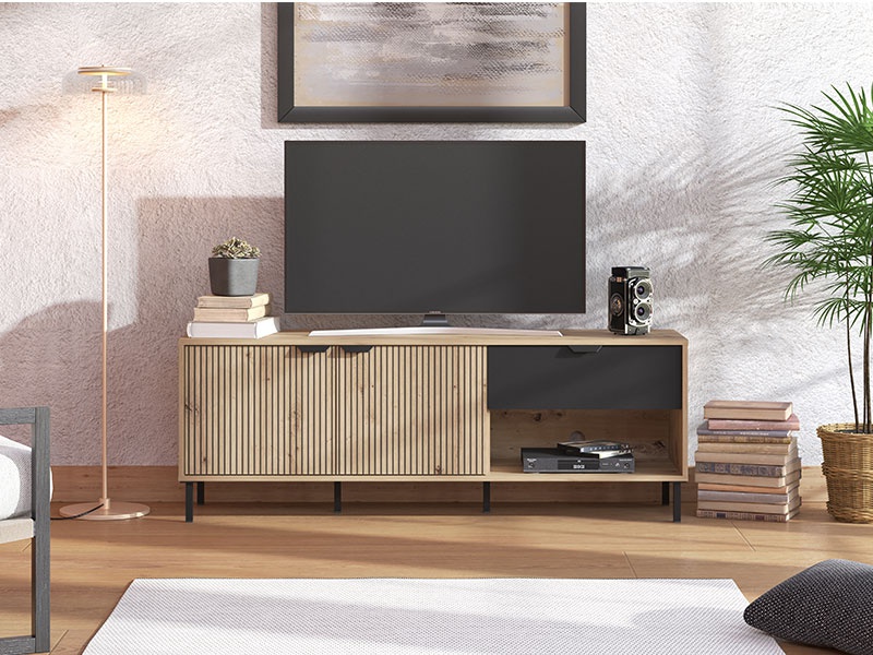 Tento TV stolík v dekore duba je nielen dizajnovo prepracovaný, ale zároveň aj mimoriadne praktický. Dve uzatvárateľné skrinky vám poskytnú dostatok úložného priestoru na všetko, čo potrebujete mať po ruke, ale nechcete mať na očiach. Jedna elegantná čierna zásuvka je ideálna pre vaše multimediálne zariadenie alebo drobnosti, ktoré potrebujete mať rýchlo dostupné. A to nie je všetko! Stôl je vyrobený z kvalitného lamina s hrúbkou 1,6 cm, čo zaisťuje jeho pevnosť a odolnosť po dlhé roky. ABS hrany potom chránia stolík pred poškodením a dodávajú mu moderný vzhľad. S jeho luxusným dubovým dekorom prináša do vašej domácnosti prírodnú krásu a teplo, ktoré len prírodné drevo dokáže ponúknuť.