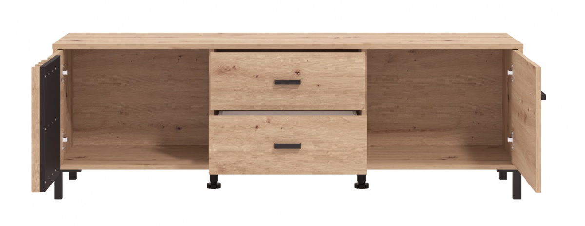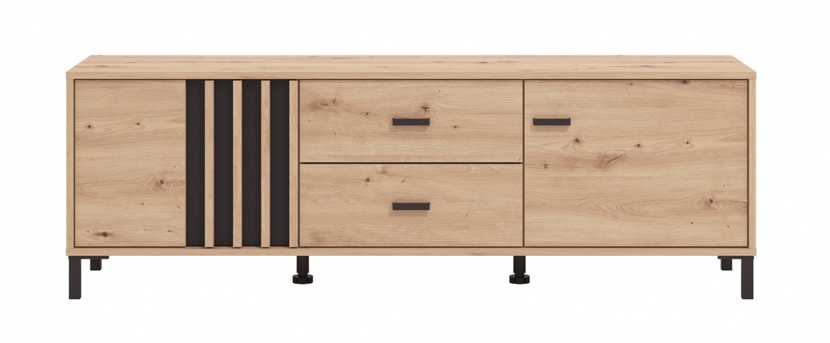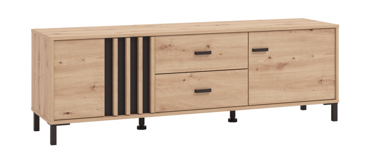 TV stolík v kombinácii dub artisan a čiernej farby je elegantným a funkčným doplnkom vašej domácnosti. Tento kus nábytku je súčasťou rovnomennej kolekcie, ktorá je navrhnutá tak, aby spĺňala najnovšie štandardy interiérového designu. Stolík je vyrobený z kvalitnej fólie dub artisan, ktorá dodáva prirodzený a teplý vzhľad, zatiaľ čo čierna farba pridáva moderný a sofistikovaný prvok, ktorý sa ľahko integruje do rôznych štýlov interiéru.