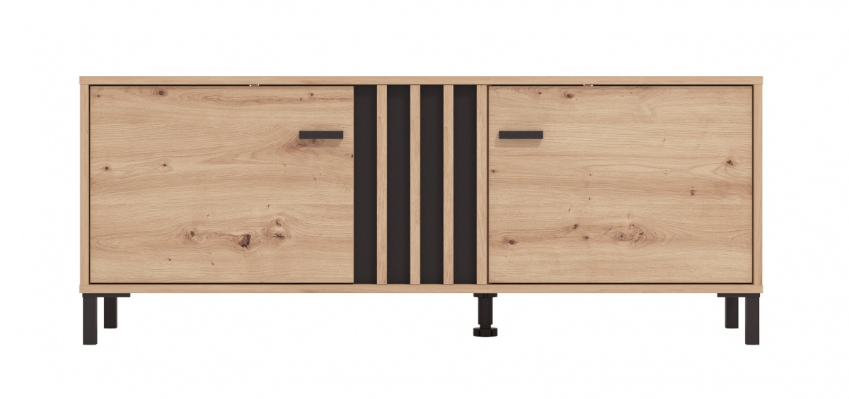 TV stolík v kombinácii dub artisan a čiernej farby je elegantným a funkčným doplnkom vašej domácnosti. Tento kus nábytku je súčasťou rovnomennej kolekcie, ktorá je navrhnutá tak, aby spĺňala najnovšie štandardy interiérového designu. Stolík je vyrobený z kvalitnej fólie dub artisan, ktorá dodáva prirodzený a teplý vzhľad, zatiaľ čo čierna farba pridáva moderný a sofistikovaný prvok, ktorý sa ľahko integruje do rôznych štýlov interiéru.