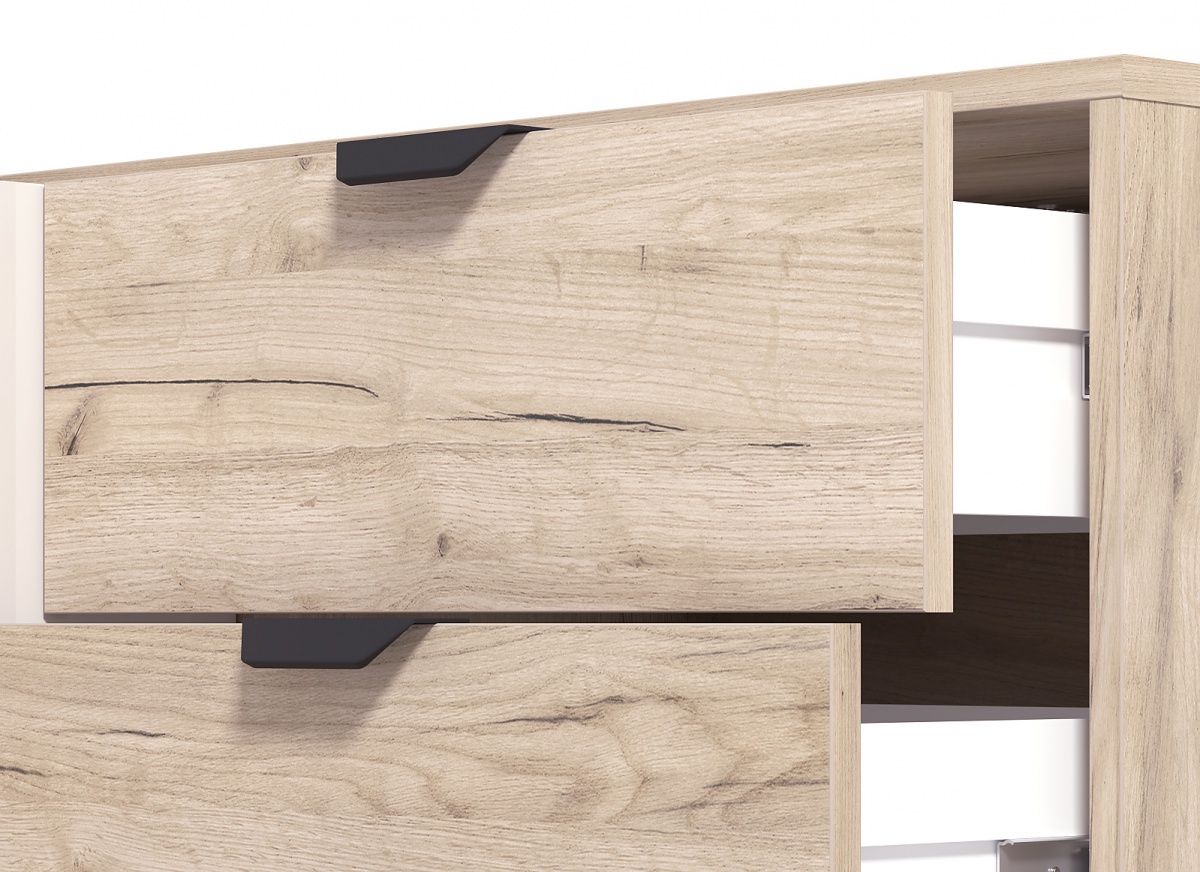 Milovníci nadčasového a moderného dizajnu zbystrite! Nábytok z kolekcie Xaden vo svojom domove privítate s otvorenou náručou. Nechajte sa obklopiť eleganciou a útulnosťou a vytvorte zo svojej obývačky štýlový priestor. Výber medzi dvoma sofistikovanými farebnými kombináciami, vysoko kvalitné materiály a dizajnové prevedenie. Kolekcia Xaden má viac ako dosť, čo môže ponúknuť. Dekor duba artisan s čiernou farbou ocenia tí, ktorí milujú nadčasové prevedenie a moderný nádych, zatiaľ čo dub šedý s kašmírovým odtieňom poteší vyhľadávače svetlého a jemného nábytku. Na kolekcii bolo použité kvalitné lamino v hrúbke 16mm a MDF doska. Nôžky a úchytky sú vyrobené z kovu.