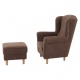 Ušák/křeslo, s taburetem, látka hnědá, ASTRID