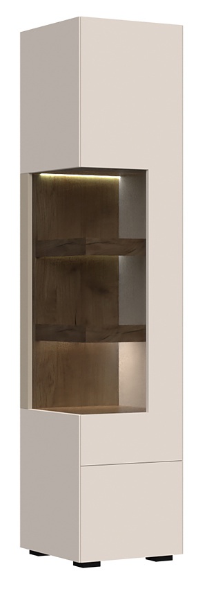 Jednodverová presklená vitrína Ambrosia - béžová/dub tobacco
