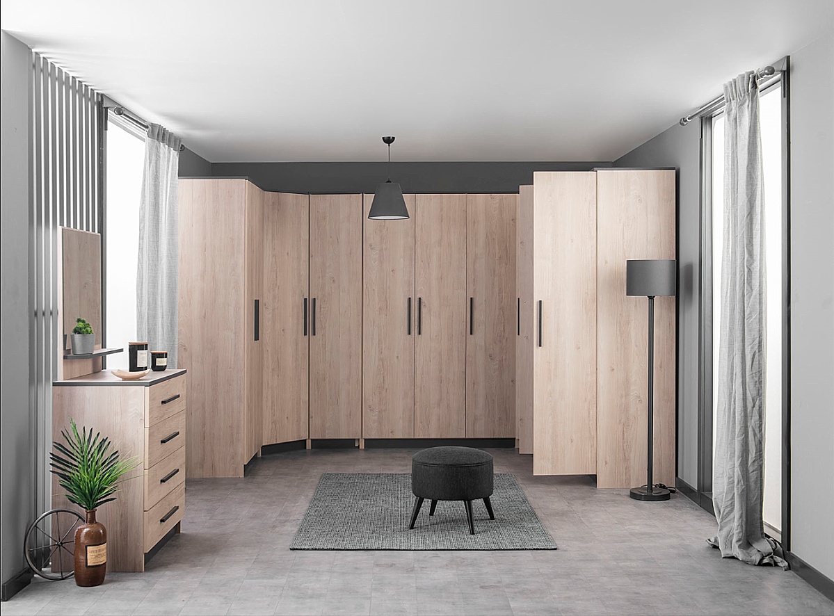 Rohová šatníková skriňa Colin - dub kestína/šedá