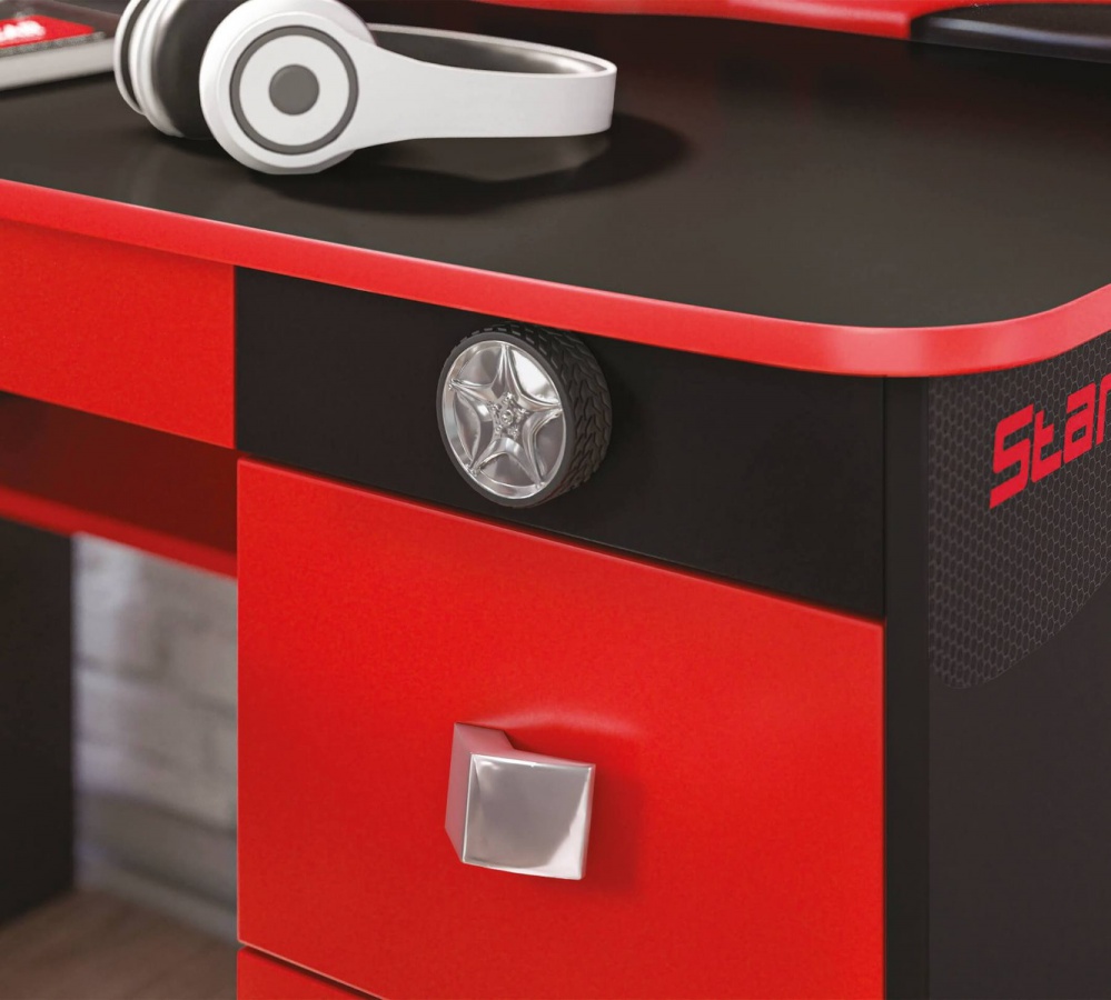 Multifunkčný písací stôl Rally s nadstavcom - červená/čierna