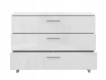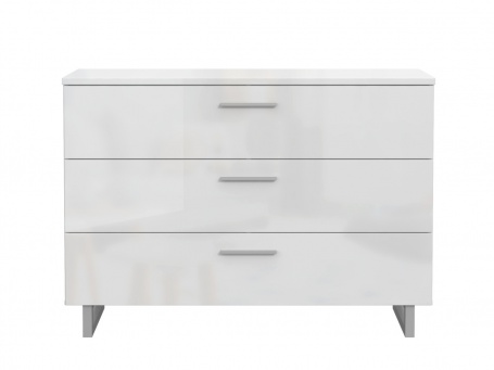 Vysoko elegantné riešenie doplnkového úložného priestoru do vašej spálne ponúka zásuvková komoda Nucleus. Skvele vynikne ako v spálni, tak aj obývacej izbe či predsieni. Univerzálny jednoduchý design zaujme každého fanúšika moderného štýlu. Bielu farbu značiacu čistotu dopĺňa vysoko lesklý povrch. Vďaka tomu dokáže celú miestnosť presvetliť a opticky zväčšiť. Objemný úložný priestor je riešený pomocou troch širokých zásuviek. Sem si môžete uložiť napríklad oblečenie, knihy či akékoľvek iné predmety. Komoda neleží priamo na zemi, ale na štýlových kovových podstavcoch.