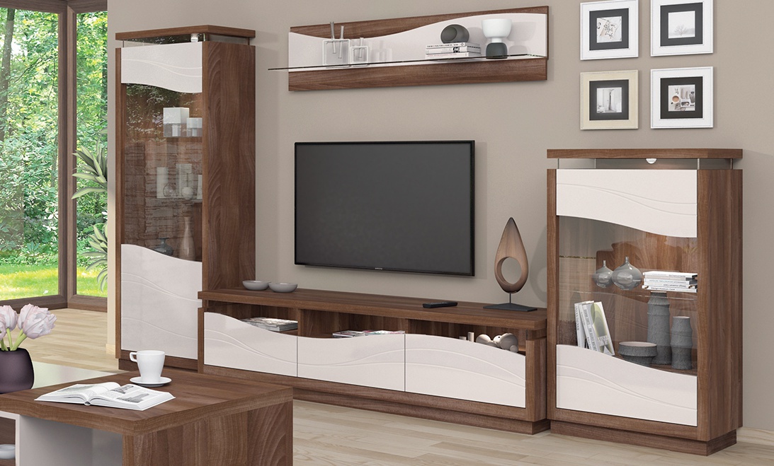 Závesná polica z kolekcie Kaia je vyrobená rovno z troch materiálov. Predná časť je tvorená kombináciou béžovej 16mm silnej MDF vo vysokom lesku a lamina o hrúbke 38mm v dekore orech aida, čo skvele dopĺňa ostatný nábytok z kolekcie Kaia. Polička, na ktorú môžete umiestniť dekoračné predmety alebo fotografie je z tvrdeného skla hrúbky 6mm. Polica je vybavená potrebným závesným kovaním.