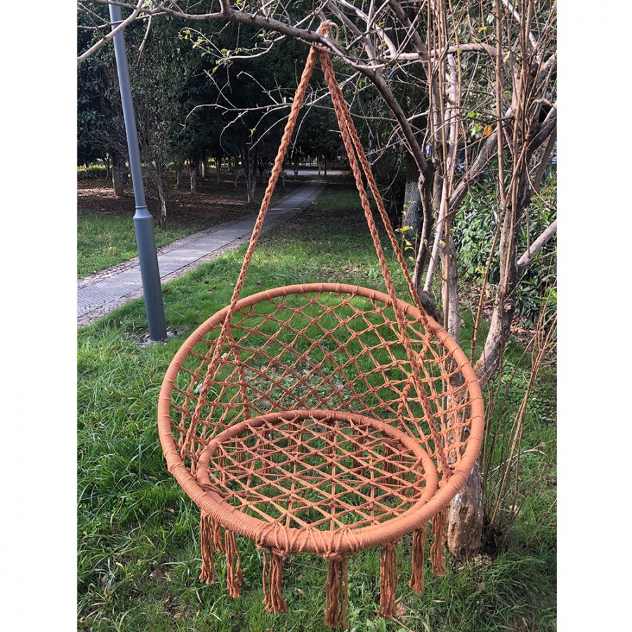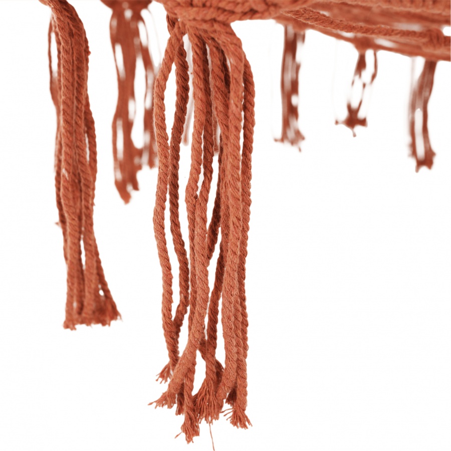 AMADO 2 je hojdacie kreslo, ktoré môžete použiť v interiéri aj exteriéri. Kresielko tvorí pevný kovový rám s bavlneným výpletom, ku ktorému sa upevnia štyri závesné laná. Samotná kovová konštrukcia by vám neposkytla žiadne pohodlie, a preto bavlnený výplet v hnedej farbe dodá kreslu nádych nežnosti, hravosti a estetickosti. Výplet je zo 100% bavlny. AMADO 2 s nosnosťou do 120kg je určené takmer pre každého. Celé hojdacie kreslo je zavesené na 4 lanách. Dodávané je v demonte.